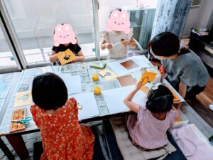 例えば人物を描いた時、まずは何色から塗るか?など、細かいことですが絵の完成度を高めるためには知っておくべきポイントなどを子供達が楽しみながら自然と身につけていけるよう、丁寧に指導して進めております。